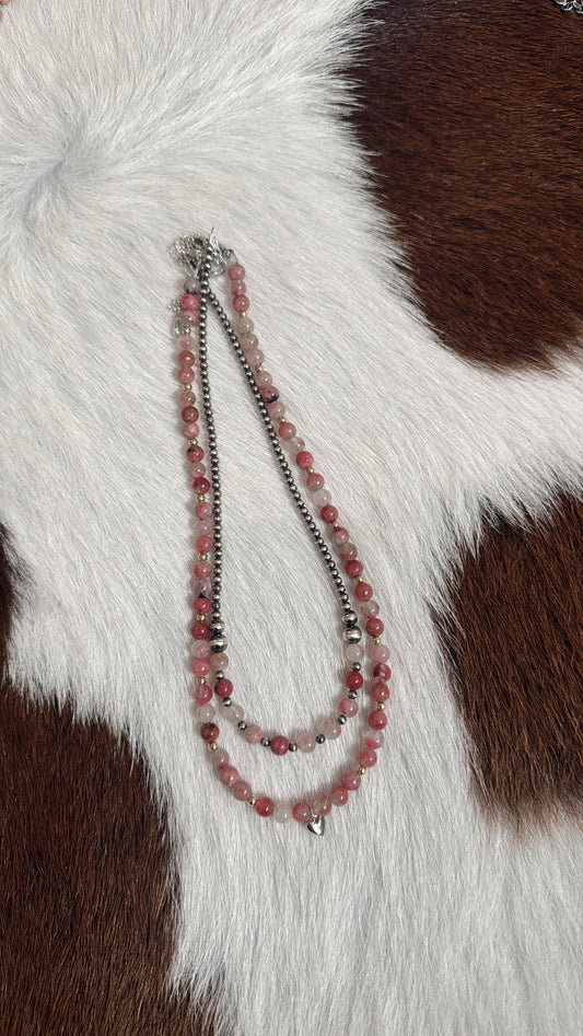 Mama Bracelet w/ Pink Rhodonite Hearts