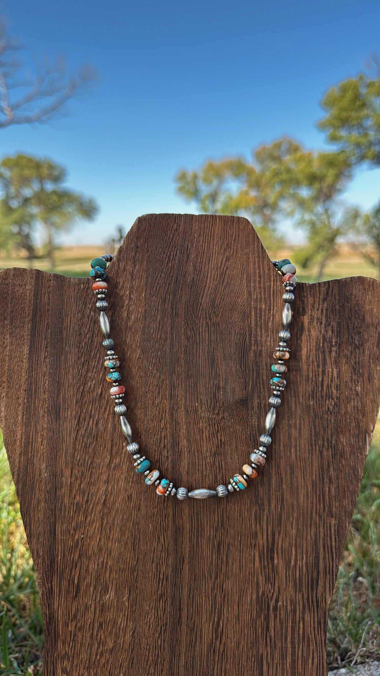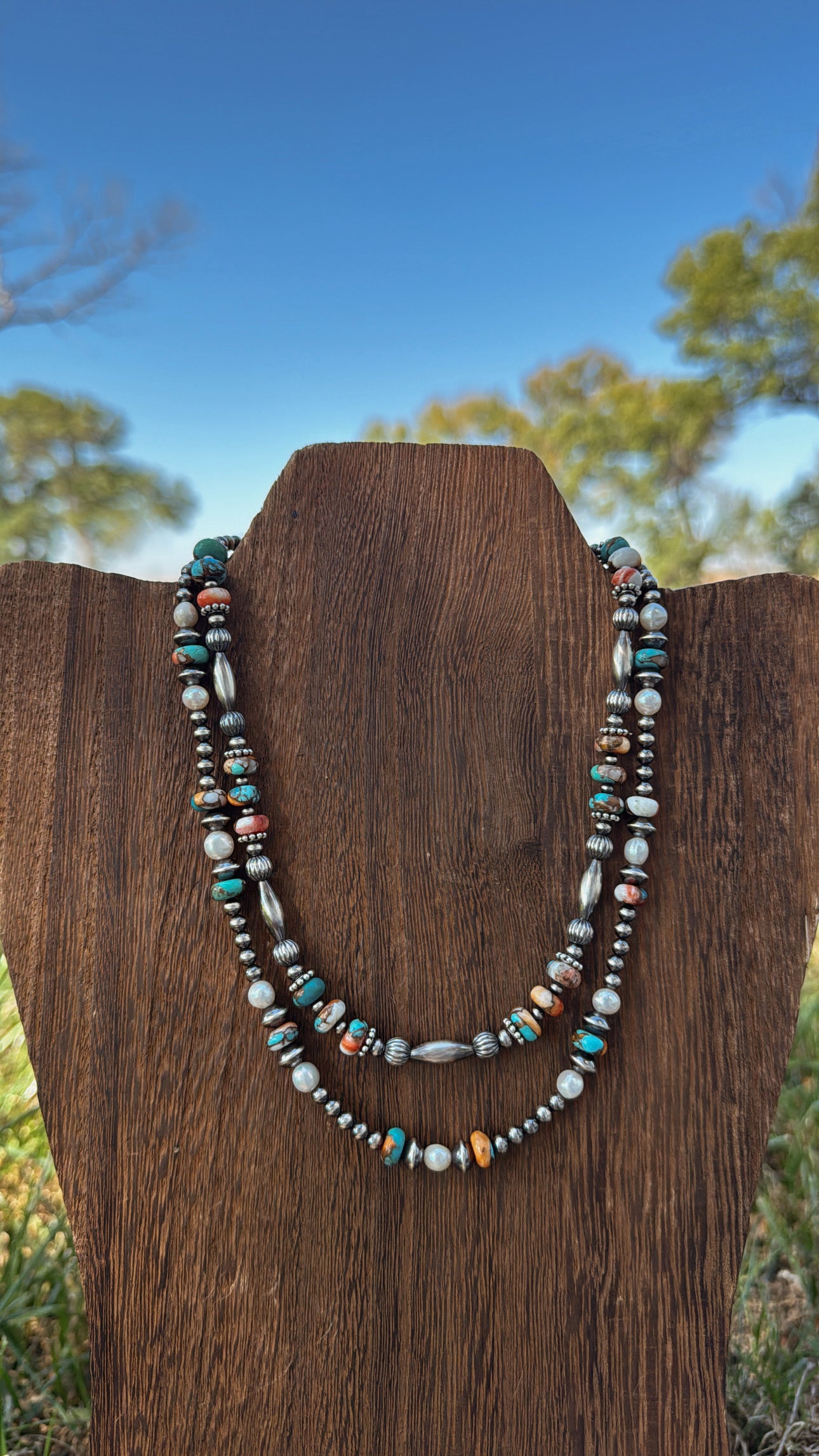 15" Orange Dahlia featuring 3-4mm pearls, 6mm corrugated pearls, and torpedos. Orange Dahlia 6mm.
