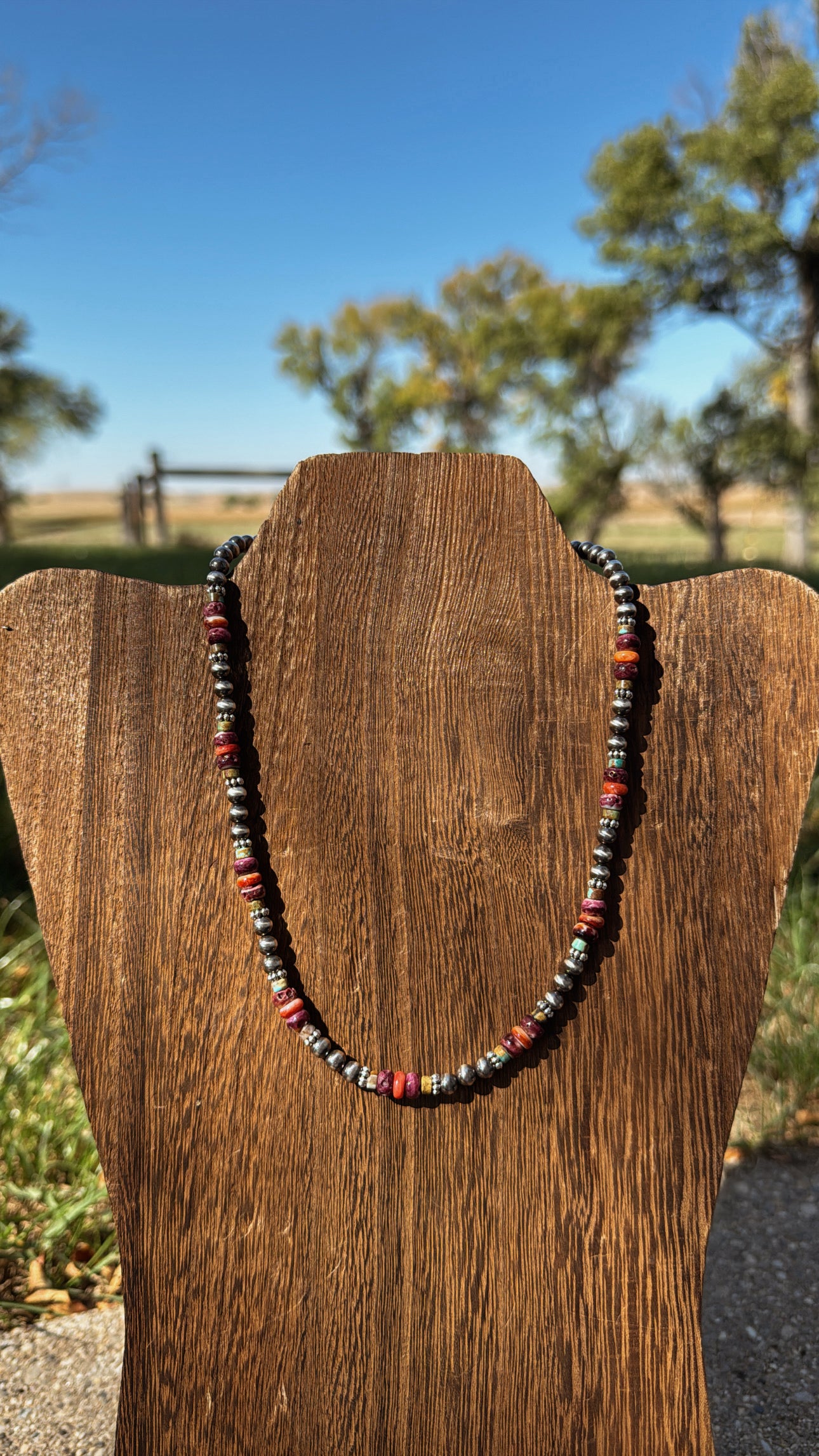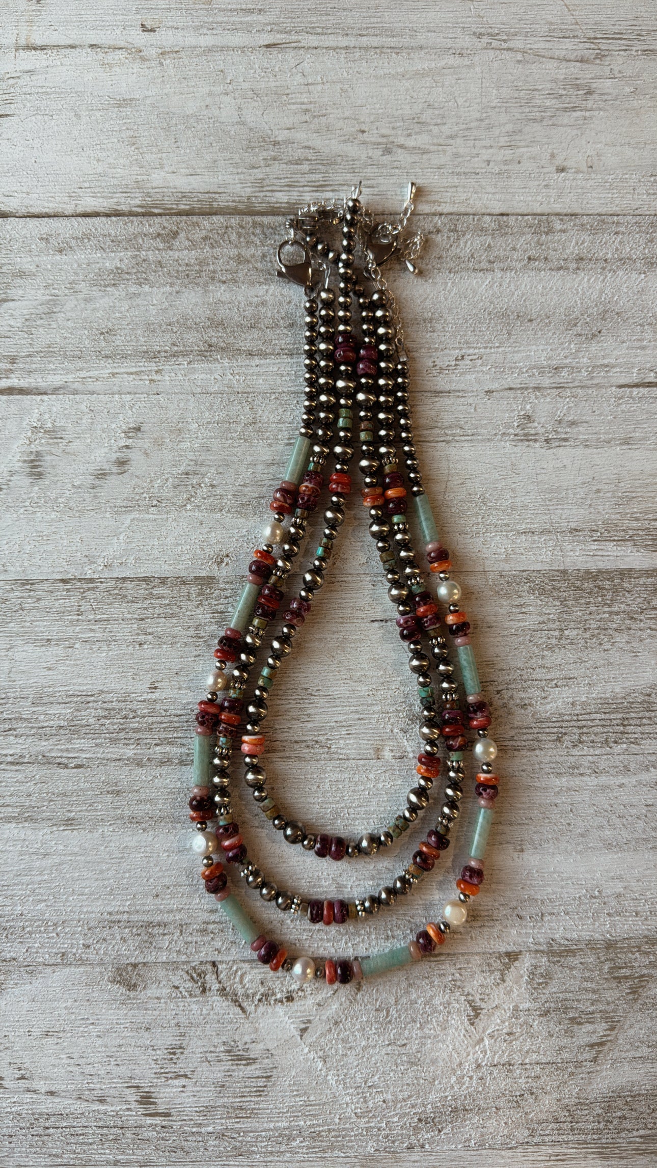 15" Turquoise/Purple Spiny/Orange Spiny featuring 5mm pearls.