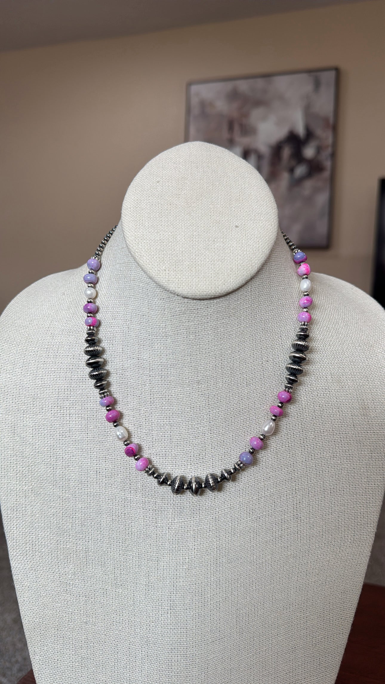 16" Pink & Purple featuring 3mm pearls and assorted saucers.