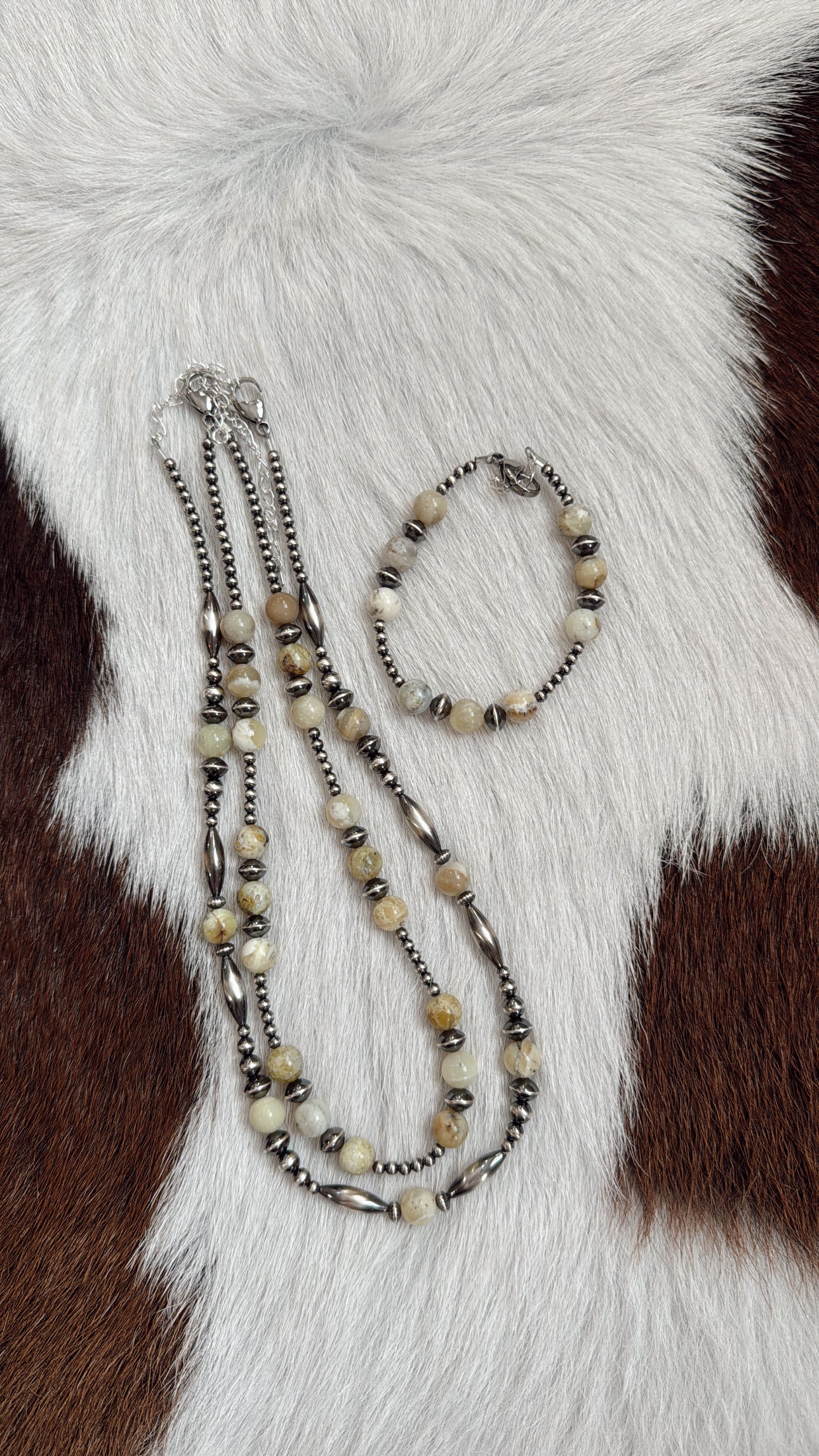 16" Yellow Opal featuring 3-6mm pearls, saucers, and torpedos.