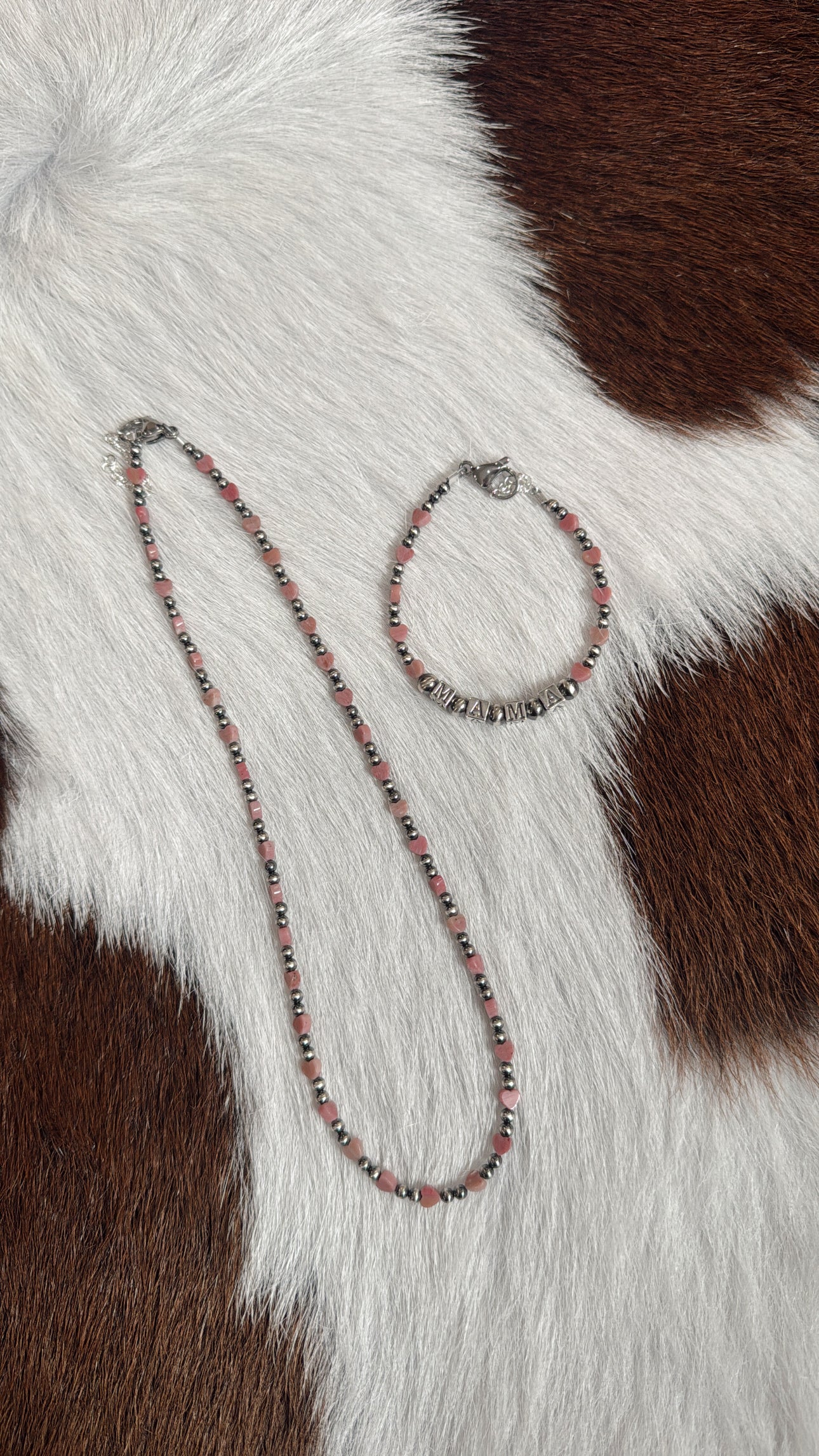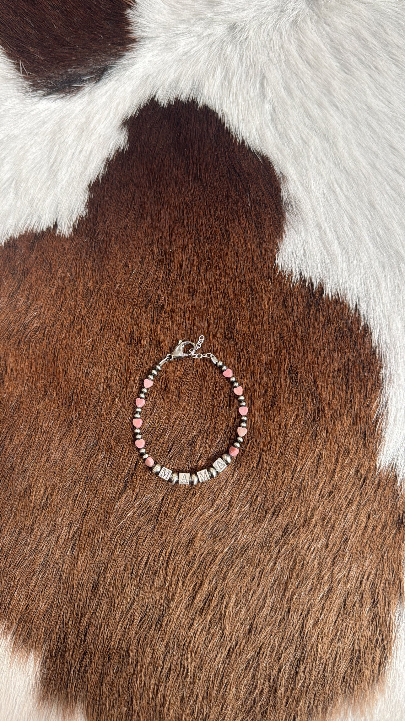 Mama Bracelet w/ Pink Rhodonite Hearts